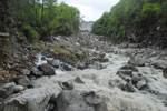 ![]() View of the glacier, its river and the gravel layer with trees. |