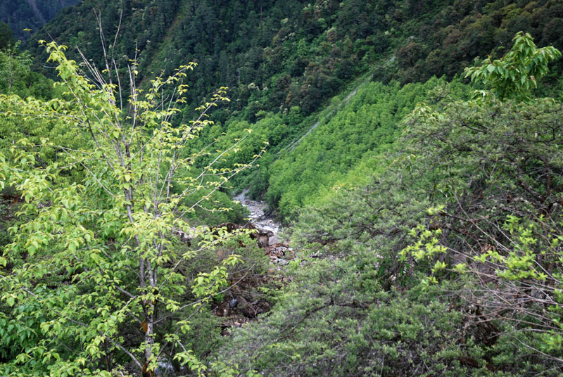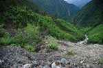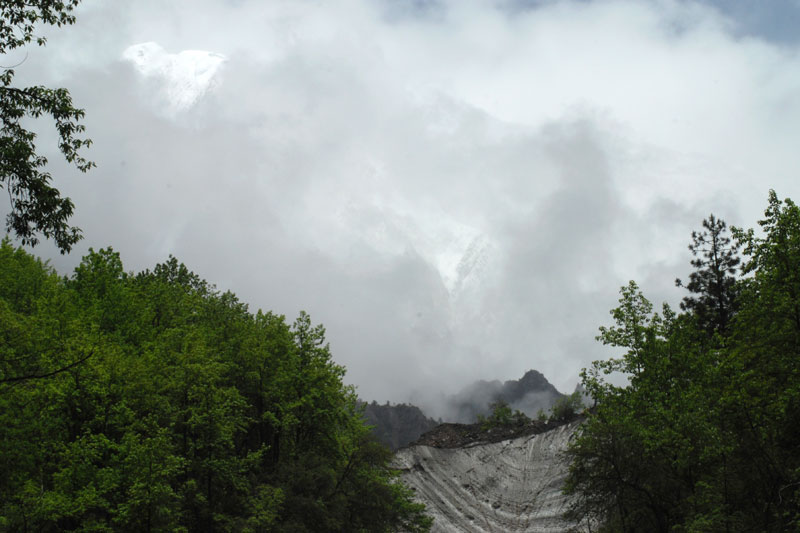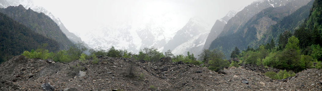 Mouth of the glacier is at 2850m altitude (28°22'33''N, 98°38'18''E), a turbulent river emerges from the 5m high and 10m wide glacier mouth. The ice front is 200m wide und 80m high. More...