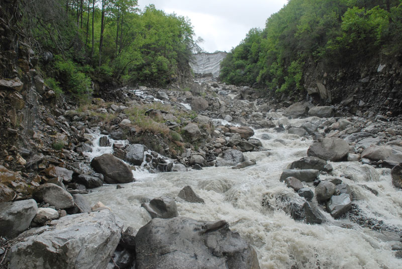 ![]() At the mouth of the glacier. Beware of falling rocks! . |